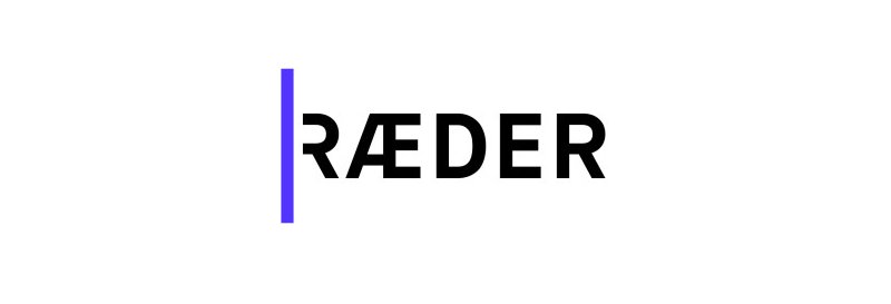 Ræder har en logo som skiller seg ut ved at det er brukt en blåfarge som fungerer som en signalfarge i kombinasjon med resten av den hvite teksten.