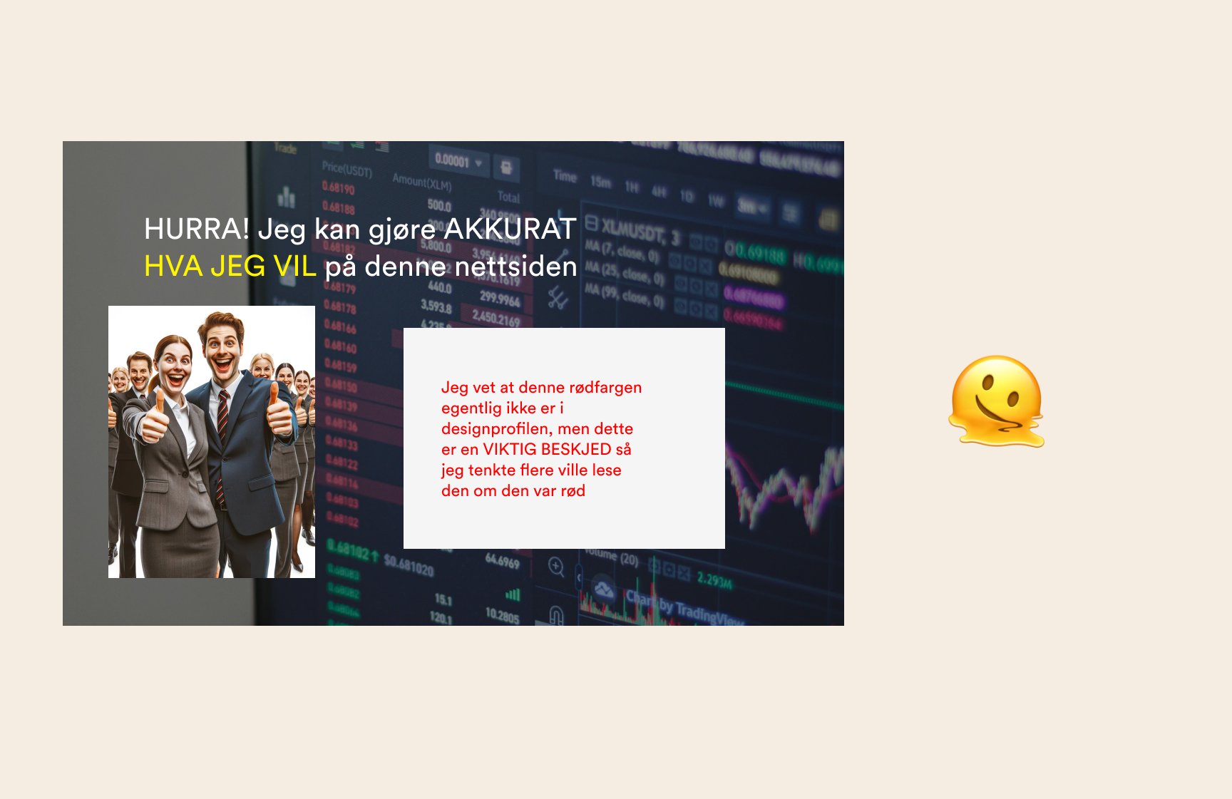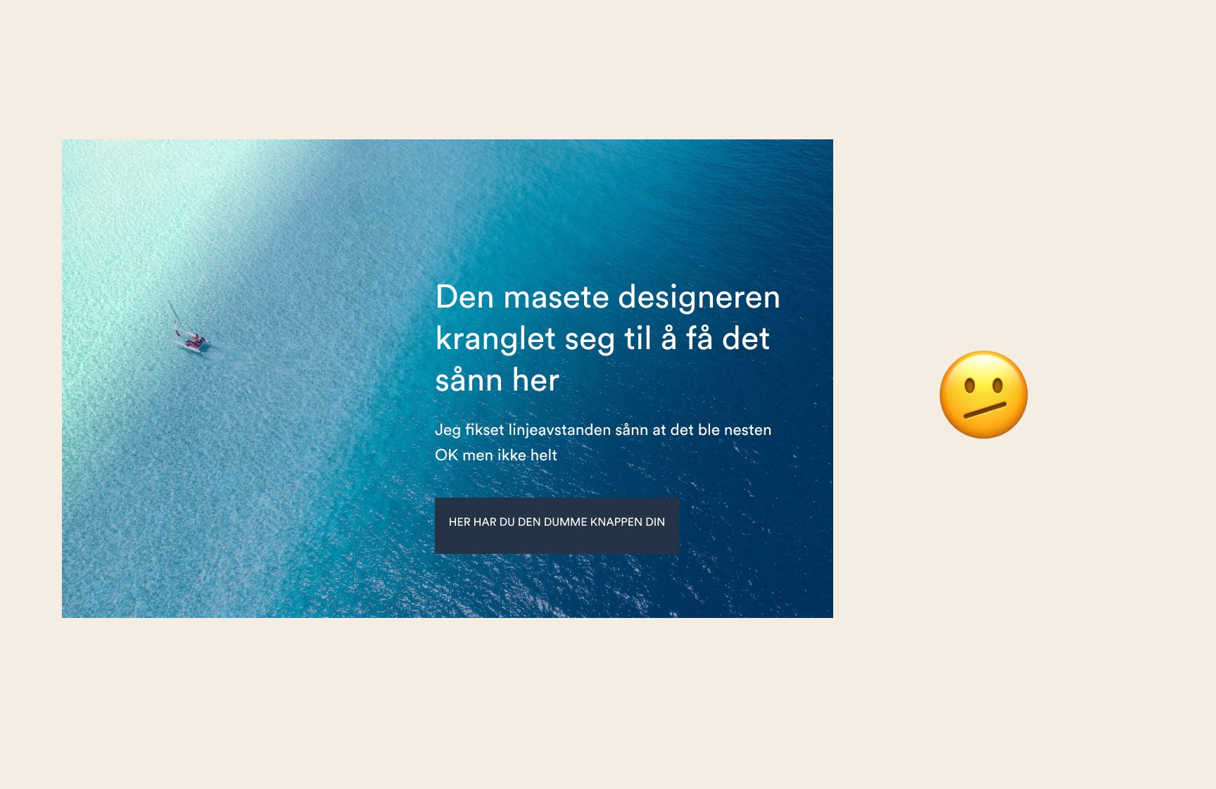 Så leveres nettsiden over til en utvikler. Men du blir helt skrekkslagen når du ser resultatet, for denne utvikleren har virkelig ikke øye for luft – og det vakre designet du har lagt så mye energi i ser bare ikke like bra ut som i skissene.