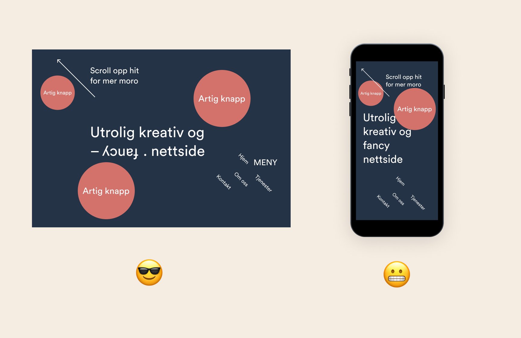 Riktignok er det noen krav du må forholde deg til uansett, som at nettsiden bør være universelt utformet og enkel å bruke for majoriteten av brukerene. Designet bør selvsagt være i tråd med designprofilen og merkevaren forøvrig.