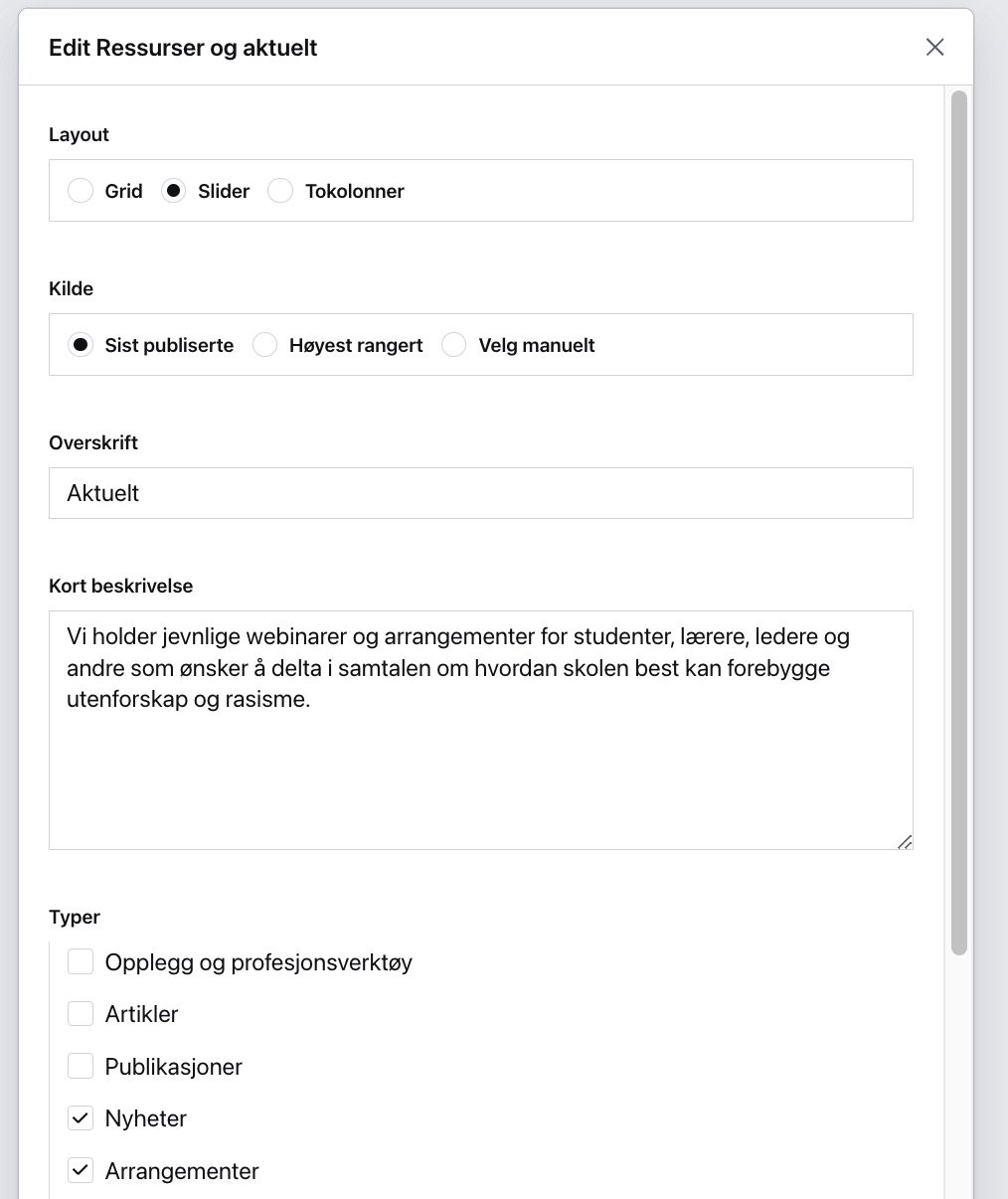For andre er det bedre å gå for en skreddersydd løsning i Sanity, slik vi lager – hvor vi kan lage en helt perfekt balanse mellom frihet og struktur som passer for akkurat deres virksomhet. Det tar lengre tid å sette opp nettsider på denne måten, men kanskje er det verdt det for dere – hvis det kan bety at kan tjene mer på sikt ved å bruke mindre tid på support eller innholdsproduksjon.