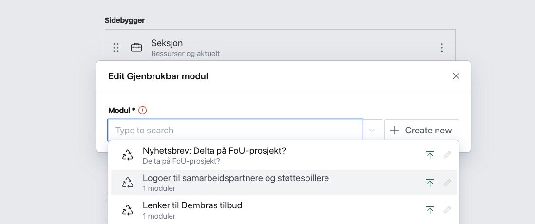 Eller kanskje har du allerede har laget byggeklossen (eller "modulen") du vil bruke fra før av. Da kan du hente inn modulen inn direkte her, istedenfor å lage den på nytt.