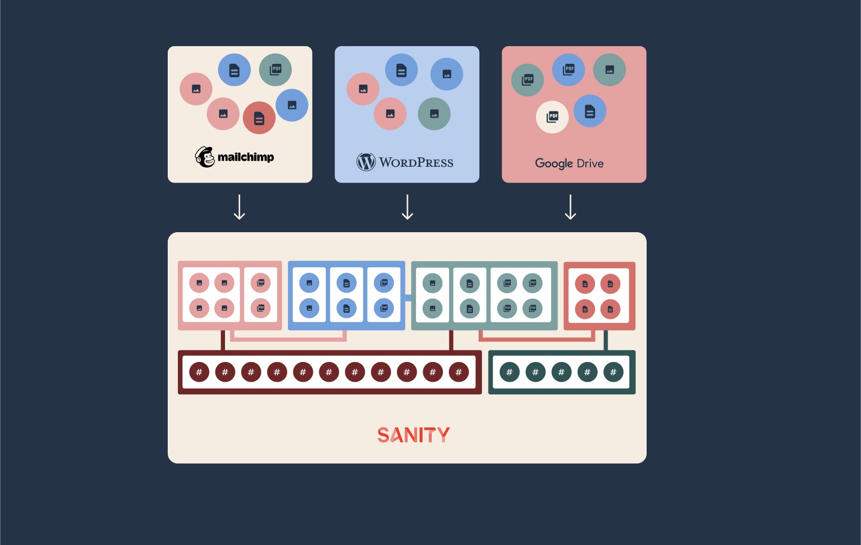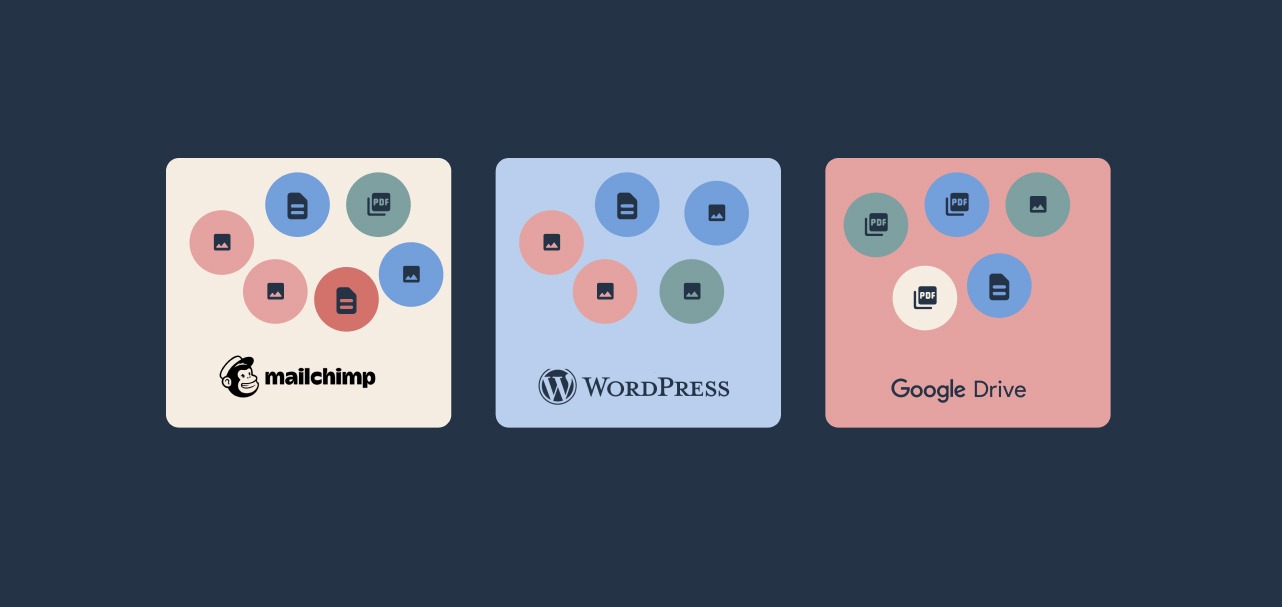 De fleste har nå innholdet sitt spredd ut i flere systemer. Kanskje man lager nyhetsbrev i Mailchimp, bruker Squarespace til en kampanjeside og redigerer hovedsiden i Wordpress, mens markedsføringmateriell bor i Google Drive.