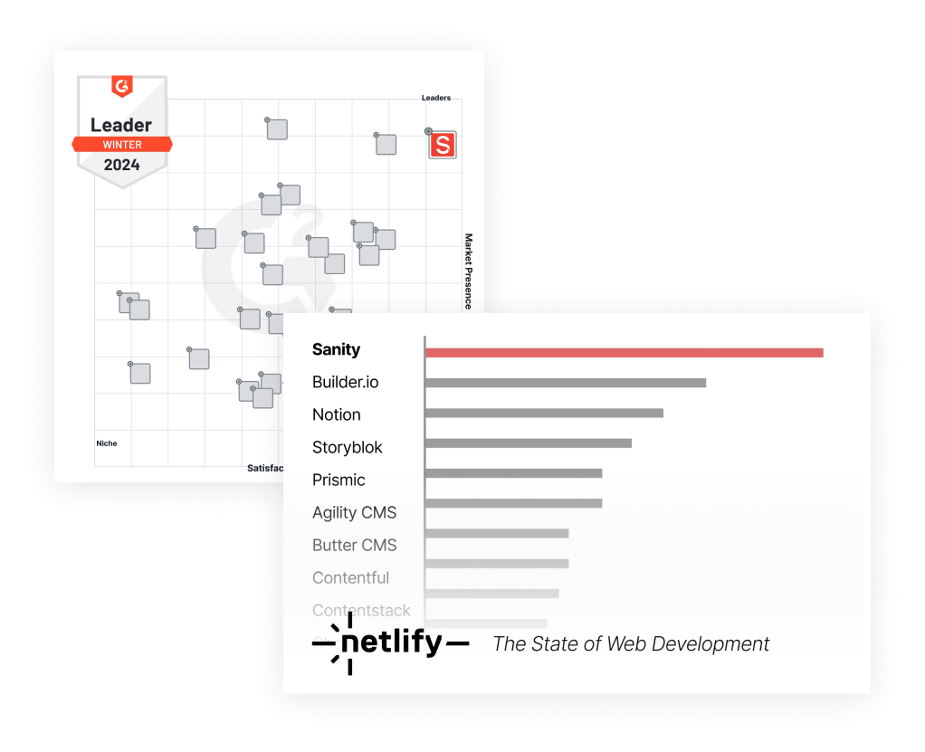 I Netlifes årlige undersøkelse blant utviklere, ble Sanity også nr. 1 og det CMS-et i alle kategorier som hadde de mest fornøyde brukerne.