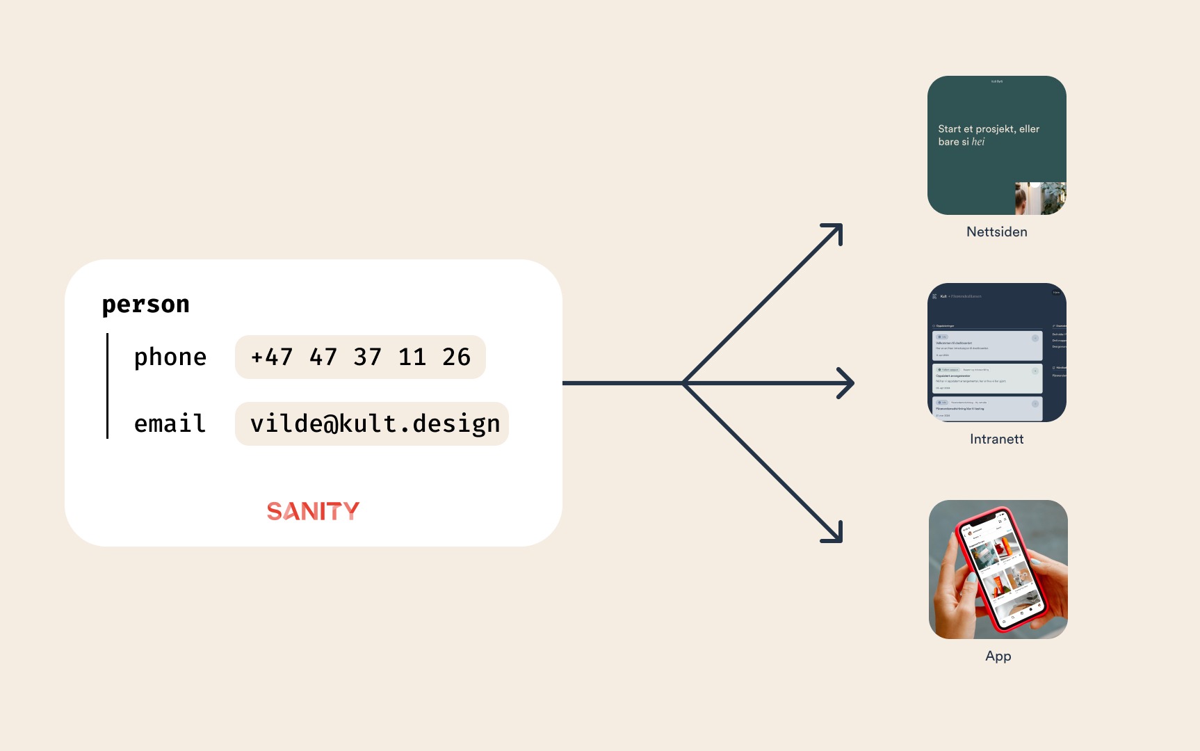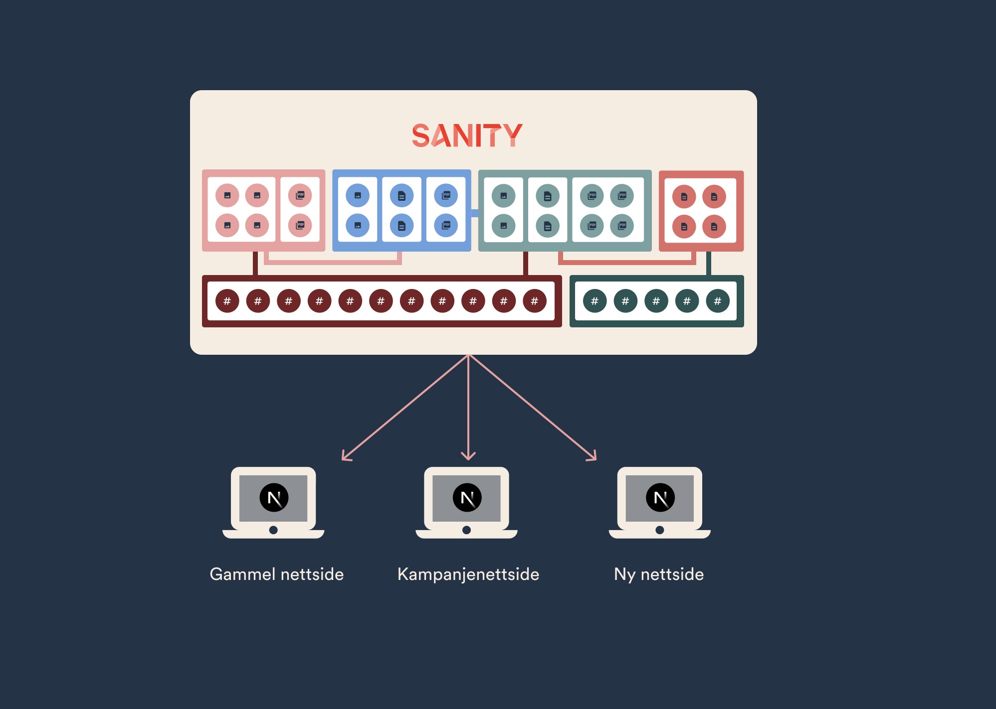 Det er nettopp den ryddige innholdsstrukturen som gjør at det er enkelt å bruke Sanity som plattform til mer enn bare én enkelt nettside.
