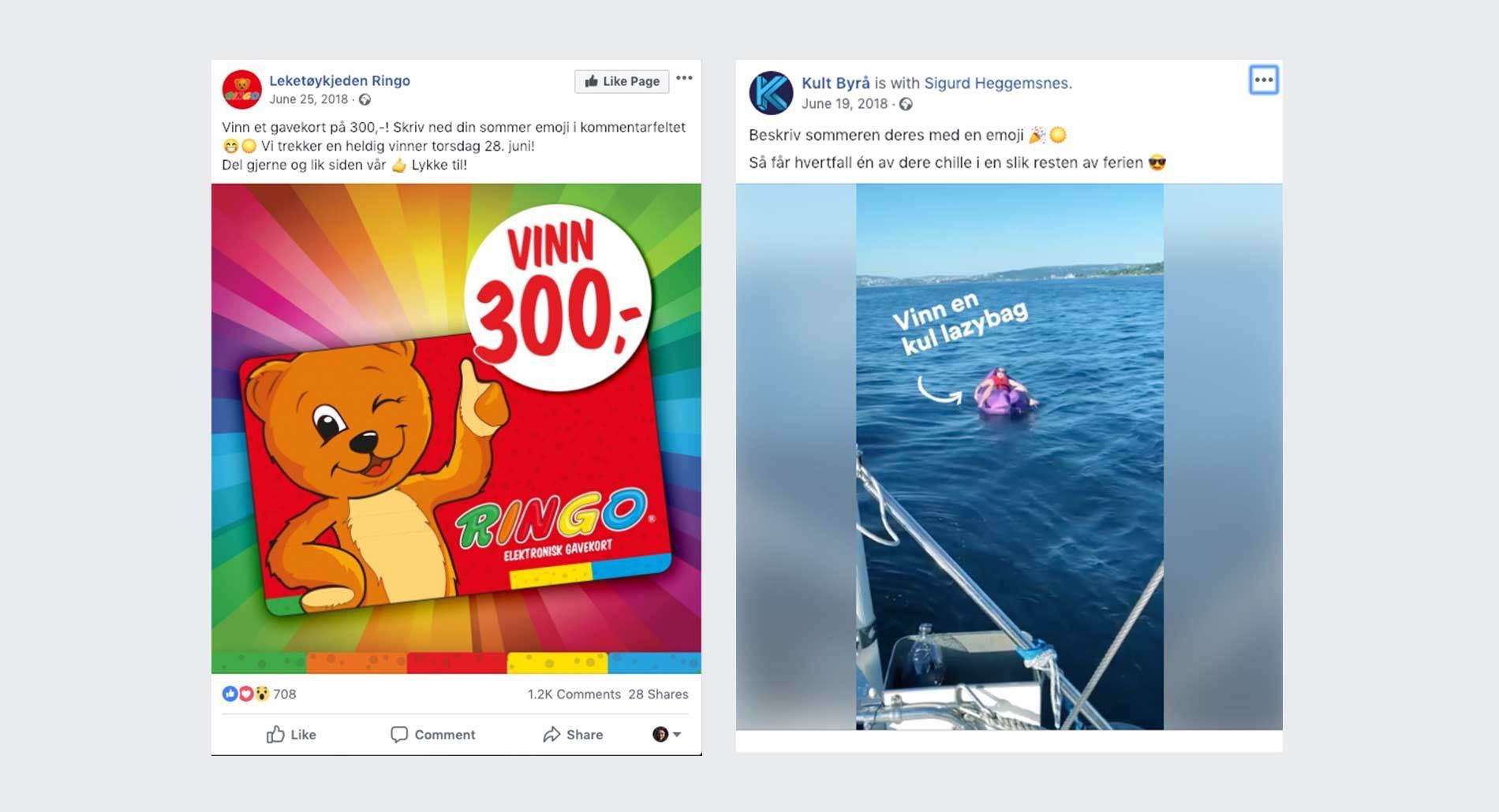 Til slutt – den aller enkleste måten å få folk til å delta på er å be dem skrive et stikkord. Det er verken den mest kreative eller spennende konkurranseformen, men det er forbanna enkelt å gjøre, så mange deltar også.