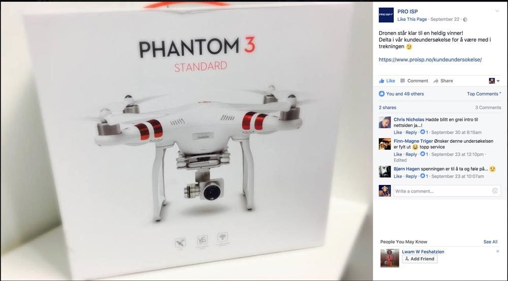 Hvis du har en kul premie, så kan kan du kombinere det med en undersøkelse. Bruk Google Forms og be folk svare kjapt på noen spørsmål om hva de synes om bedriften din.