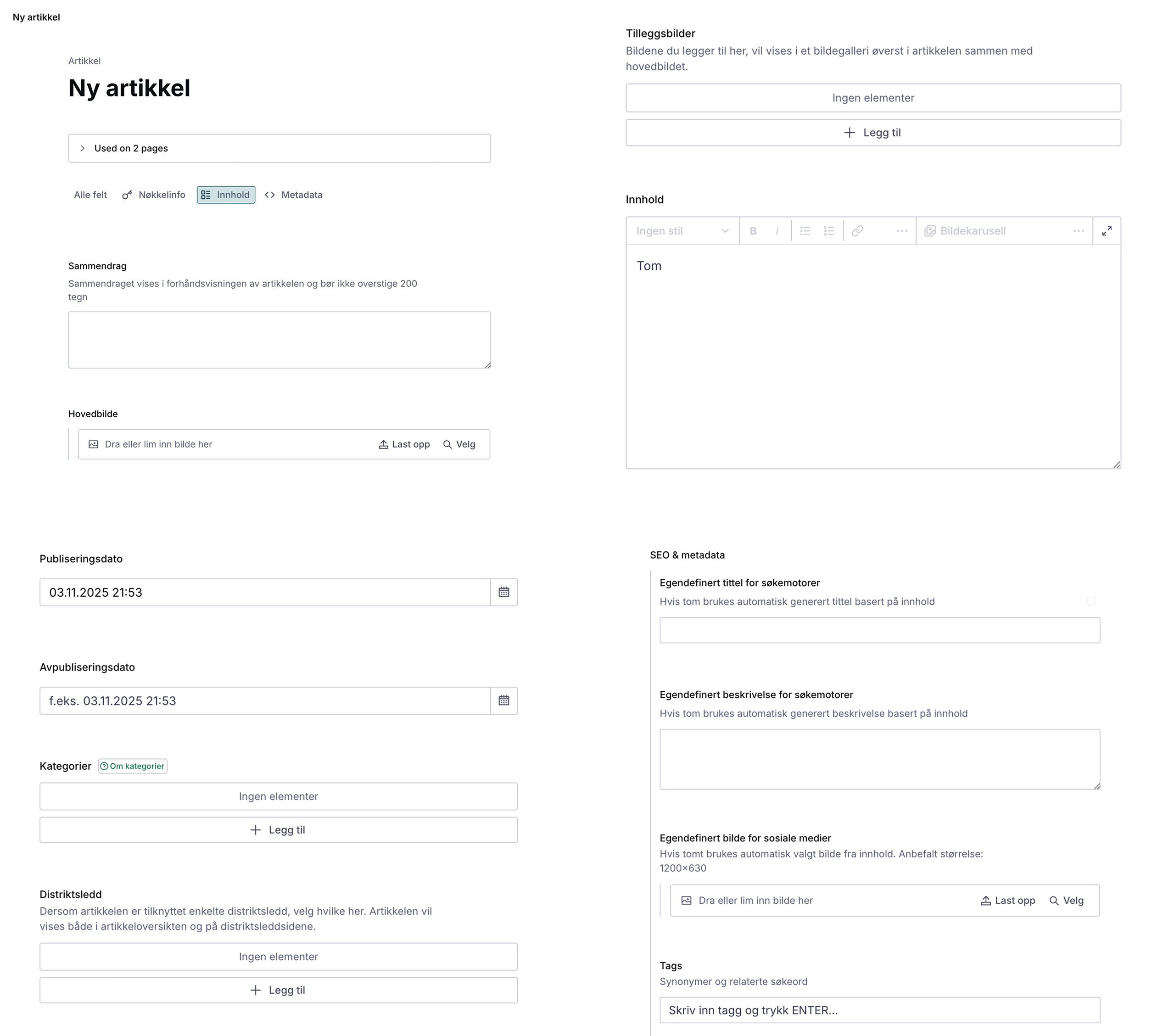 - Tags (f.eks. hvilke fagområder noe er relevant for)