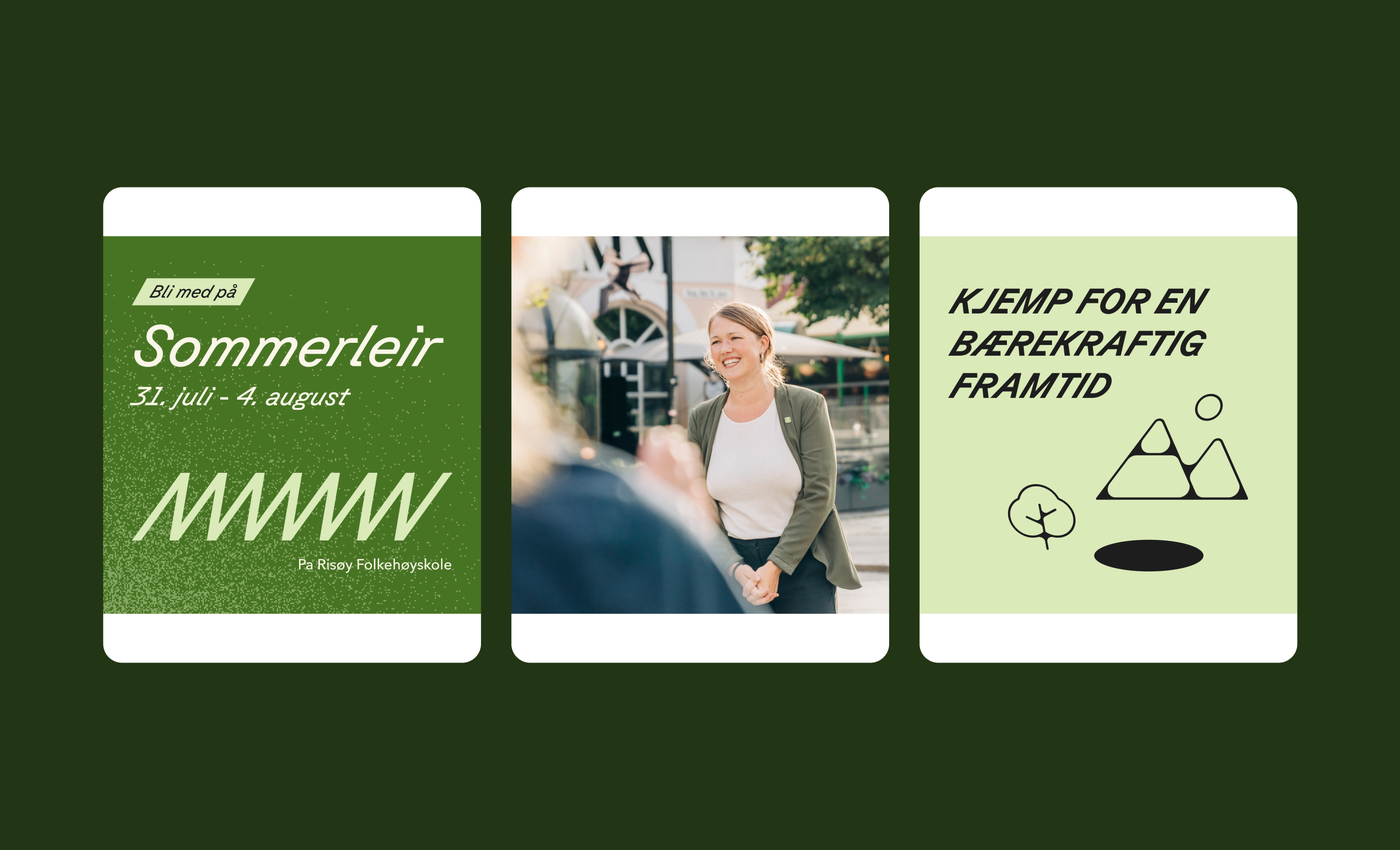 Det var avgjørende å få frem koblingen mellom Grønn Ungdom og MDG i den nye visuelle profilen. Samtidig var det viktig å utforme en identitet som var unik for Grønn Ungdom, som kunne tiltrekke seg en yngre og mer segmentert målgruppe.