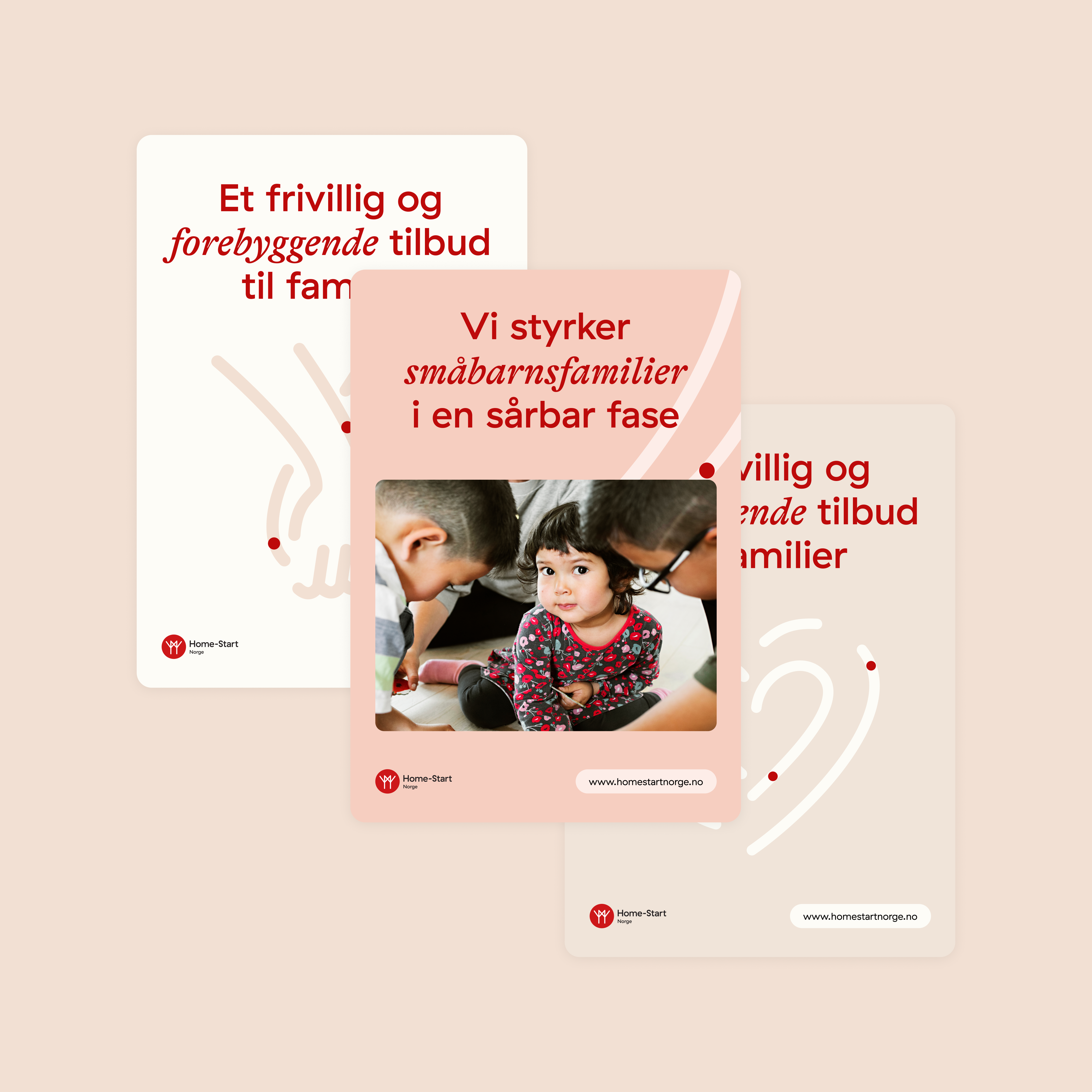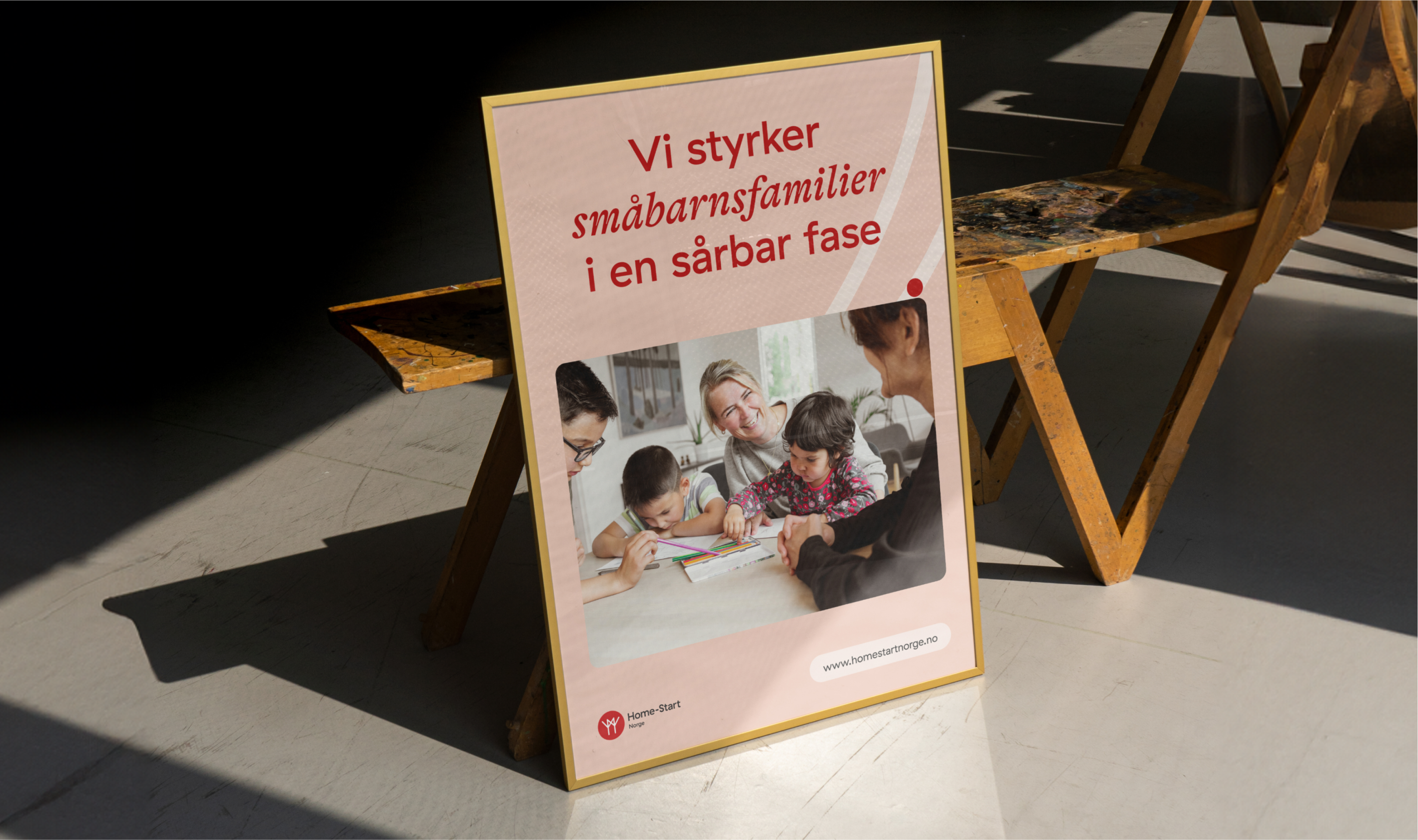 Home-Start hadde derfor behov for å fornye sin visuelle identitet og nettside. Målet var å skape en digital tilstedeværelse, som ved hjelp av en tydelig profil og en nettside som er enkel å administrere, kunne kommunisere essensen av organisasjonen på en tydelig og forståelig måte.
