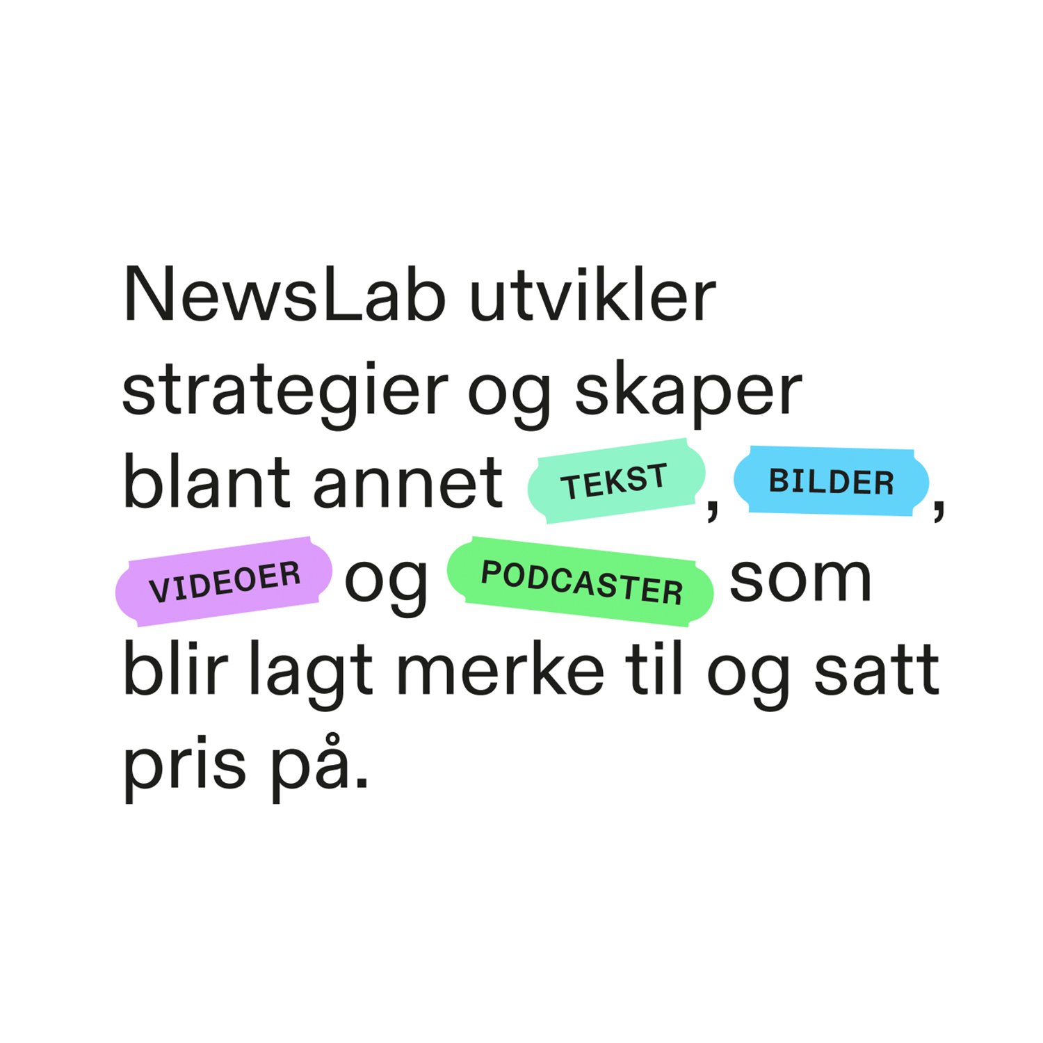 NewsLab er et innholdsbyrå som lager strategi og skaper blant annet tekst, foto, videoer og podkaster som engasjerer og gir effekt. Vår oppgave ble å formidle nettopp dette gjennom en ny nettside som representerer NewsLab i større grad enn tidligere. Bort med mørkt design – velkommen til en lys, kreativ og inspirerende verden.