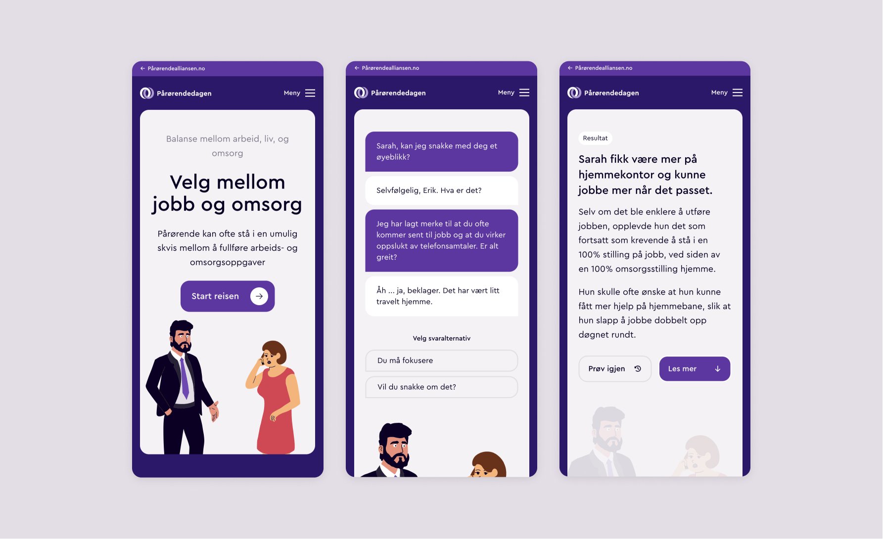 For Pårørendedagen skapte vi et ekspressivt design, med sterke farger og mer bruk av illustrasjoner. Dette ga et godt grunnlag for oppslukende historiefortelling, som ville bli viktig for å engasjere den allmenne befolkningen.